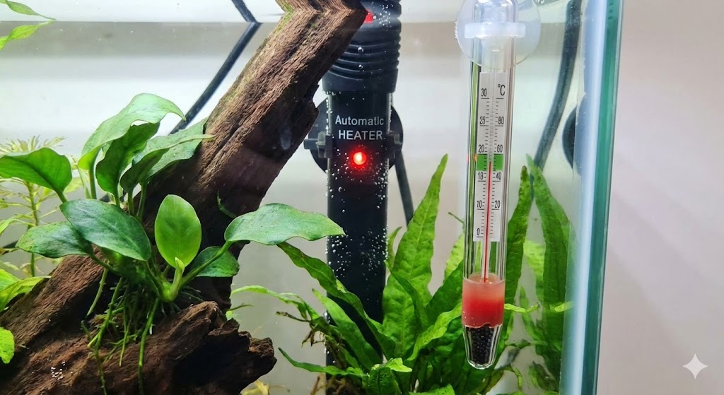 「部屋が暖かいから大丈夫」と過信するのは危険です。夜間や明け方は室温が急激に下がることが多いため、水槽用ヒーターは必須アイテムだと考えておきましょう。