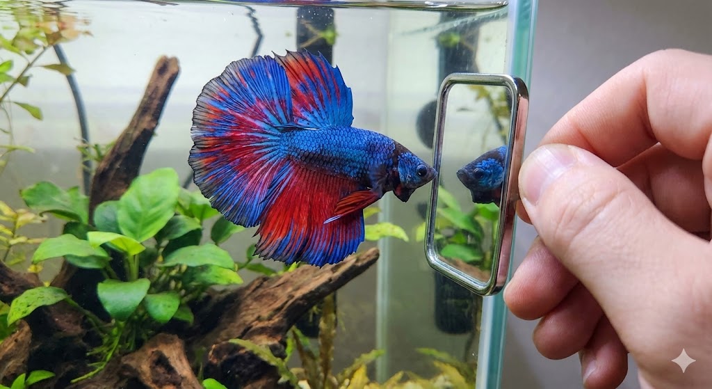 ベタ特有の健康法として「フレアリング」があります。1日1回、鏡を見せて自分の姿に威嚇させることで、ヒレを大きく広げる全身運動になります。