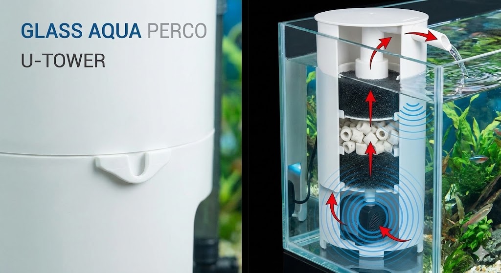 PERCOは、GEXの標準規格であるカートリッジ式の「スリムマット」を1枚使用します。このマットは物理ろ過(ゴミを越し取る)と吸着ろ過(活性炭で黄ばみを取る)には優れていますが、バクテリアを定着させて有害物質を分解する「生物ろ過」の能力はそれほど高くありません。通常のフィルターであれば、セラミックろ材などを追加して生物ろ過能力を強化することができますが、PERCOのU-TOWER内はスペースが非常に限られており、ろ材を追加する余地がほとんどありません。