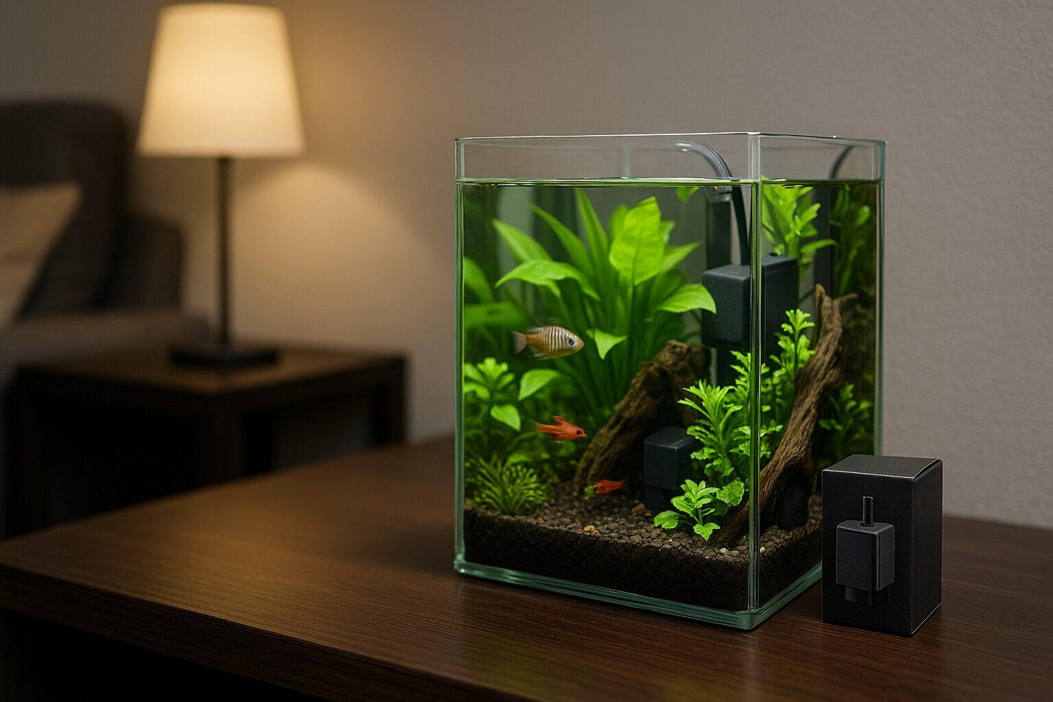 限られたスペースで楽しむ小型水槽やボトルアクアリウム。その美しい世界観を維持しようとする時、最大の敵となるのが「フィルターの存在感」と「動作音」です。「せっかく綺麗なレイアウトを作ったのに、黒い箱が目立って台無し…」「寝室に置いたらブーンという音が気になって眠れない…」そんな悩みを抱えているアクアリストは少なくありません。