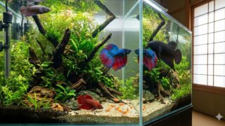 プラカットを飼う上で一番こだわってほしいのが、実は「水槽のサイズ」です。よくベタはコップや小さなボトルでも飼えると言われますが、プラカットに関しては少し広めの環境を用意してあげてください。彼らは泳ぐのが大好きで、特にオスは自分の縄張りをパトロールするように元気に動き回ります。極小のボトルだと、その活発な姿が見られないばかりか、運動不足で肥満になったりストレスを溜めたりすることもあります。