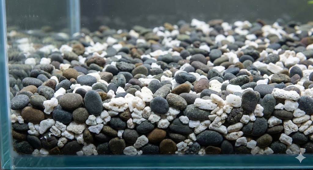 この組み合わせなら、サンゴ砂と大磯砂から溶け出すミネラル供給により、水質をグッピーの生理機能に合致した理想的な弱アルカリ性(pH 7.0〜7.5)に、強固に保つことができます。水質調整剤のような一時的な効果ではなく、底床そのものが24時間体制でpHの低下を防ぐ「巨大なバッファー(緩衝装置)」として機能するため、多少の水換え不足や給餌過多があったとしても、水質が急変してグッピーがショック死するような事故を劇的に減らすことが可能です。