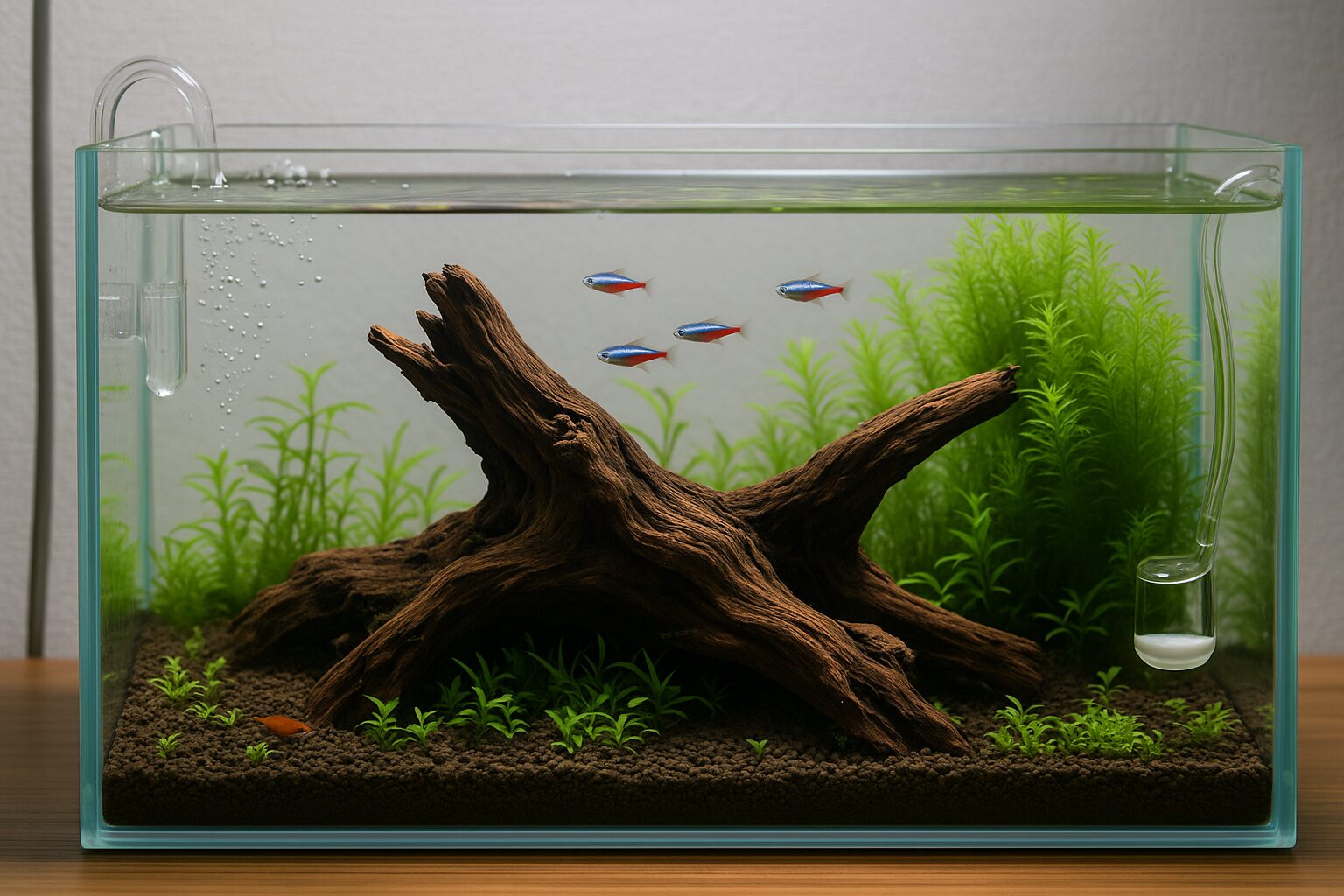 流木に含まれるタンニンなどの成分(これが「アク」の正体)が溶け出すと、水槽の水が紅茶のように茶色く濁ります。これは「ブラックウォーター」と呼ばれ、魚自体に直接的な害はないとも言われますが、せっかくの水景の観賞価値は著しく下がってしまいますよね。