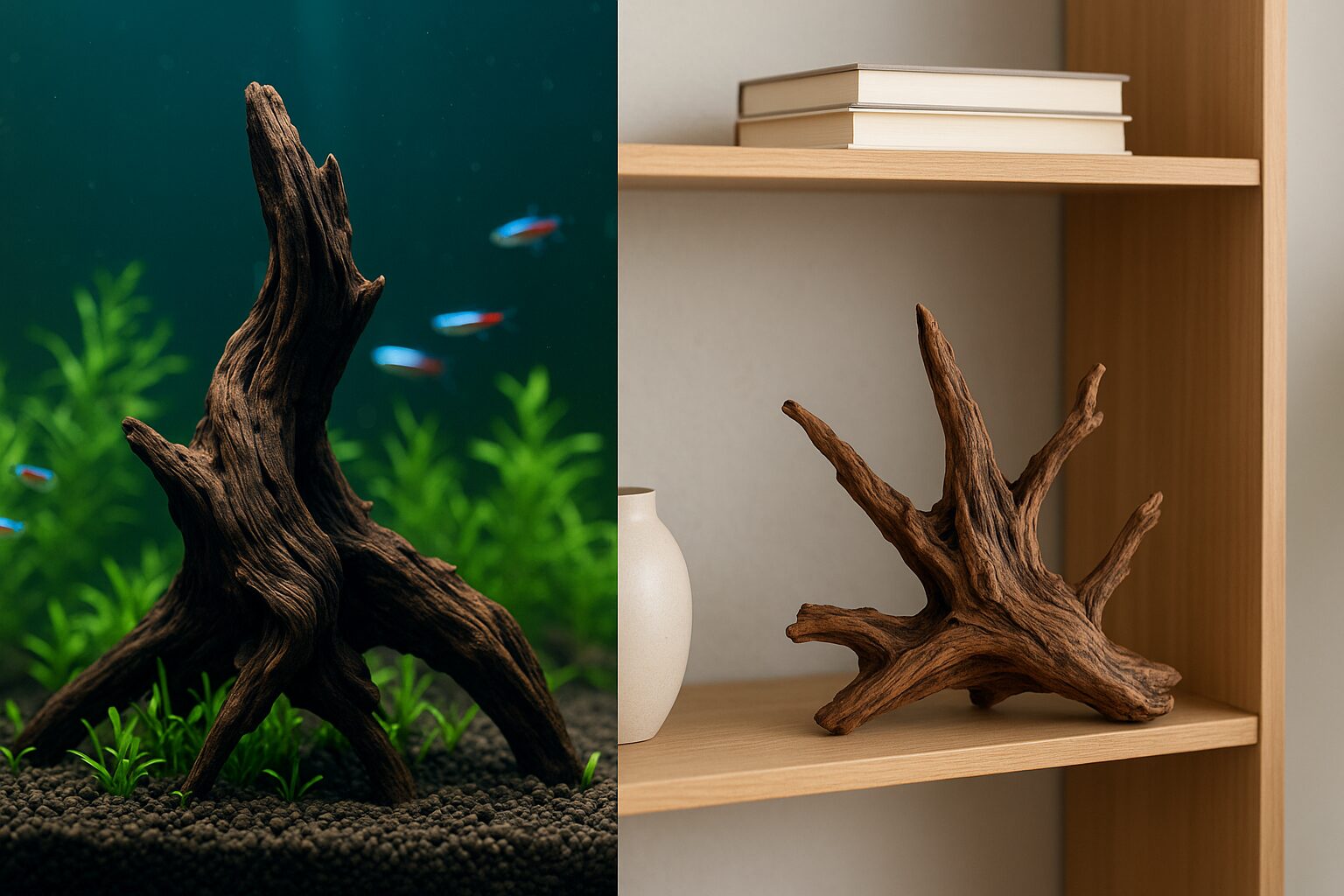 ただし、アクアリウム(水槽内)に入れる場合は注意が必要です。天然木ではなく樹脂製のイミテーションである場合や、水質に影響のある塗料が使われている可能性もあるため、商品説明をよく確認する必要があります。