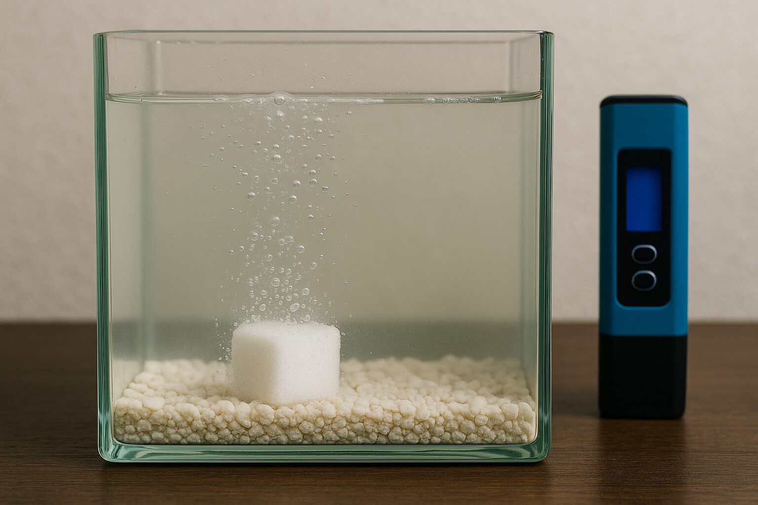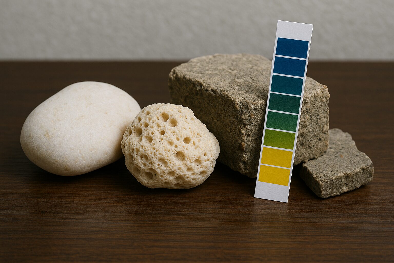 これらの石に含まれる主成分の「炭酸カルシウム(CaCO3)」が水に溶け出して、pH(ペーハー)や総硬度(GH)をどんどん上げちゃうんですね。メダカみたいに丈夫と言われるお魚でも、急激な水質変化は致命的なストレスとなり、pHショックで最悪の場合、数時間で命を落とすことにも繋がります。まずはこれを避けるのが大前提です。