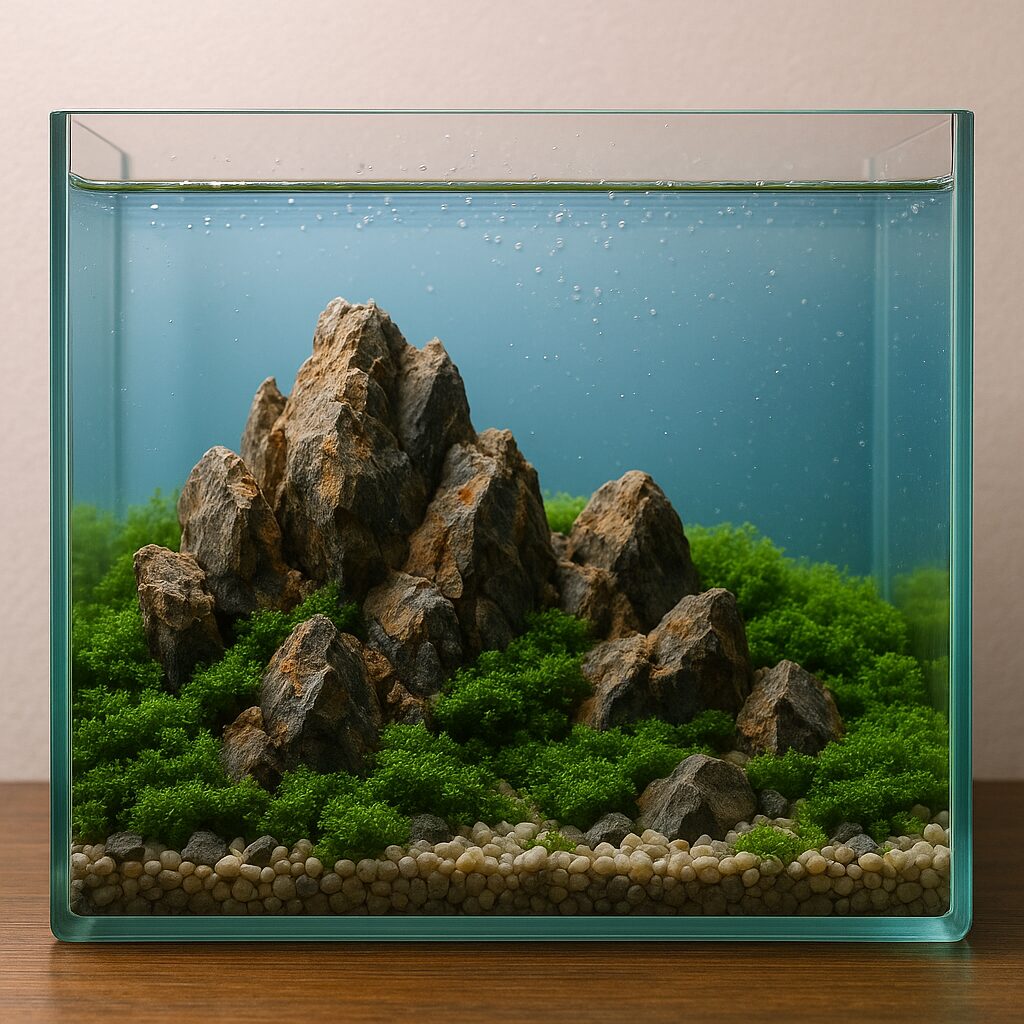 安全が確認できた透明なビー玉やおはじき、あるいはガラス製の小さな小皿や置物。これらは水質に影響を与えない(ガラスなので)ので、安全なアクセントとして使いやすいです。光が当たるとキラキラしてキレイかもしれません。