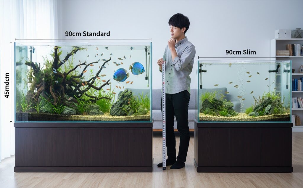【重要】スリムタイプの注意点:60cm規格水槽との比較