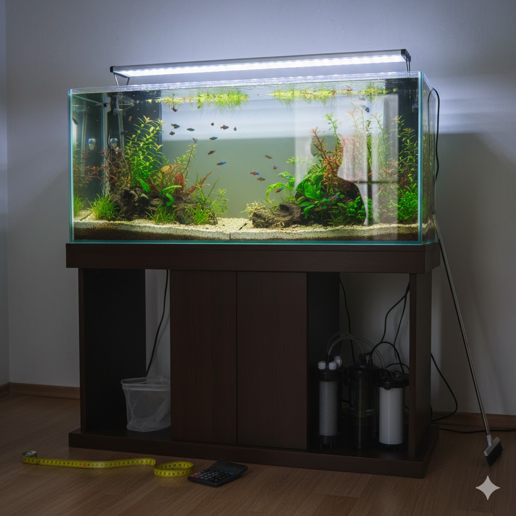 「水量」は、アクアリウムの設計、生物の安全、設置の安全、そして日々の管理の容易さのすべてに直結する、最も重要な基本データです。