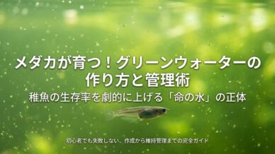 メダカ飼育に欠かせないグリーンウォーターの作り方を初心者の方にもわかりやすく解説します。植物プランクトンが豊富な水を作るためのコツや注意点、必要な道具を詳しくまとめました。この記事を読めば、誰でも簡単にグリーンウォーターの作り方をマスターして、元気なメダカを育てることができます。