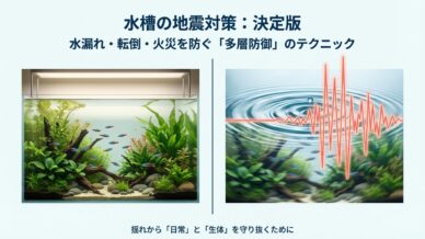 スタートガイド 水槽の地震対策!水がこぼれない仕組みと絶対やるべき固定のコツ 地震発生時、水槽の地震で水がこぼれないようにするための対策は万全ですか?室内への浸水被害を防ぎ、愛魚の安全を守るためには事前の備えが不可欠です。この記事では、水槽の地震でこぼれないための必須の安全対策と具体案を詳しく提示します。大切な住まいと魚を守る秘訣を今すぐチェックしましょう。 2026.01.22 スタートガイド
